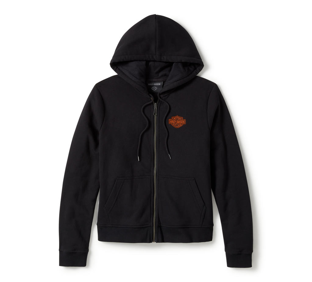 ハーレーダビッドソンのグラフィックがクラシックな刺繍で施され、アイコニックなルックを演出します。