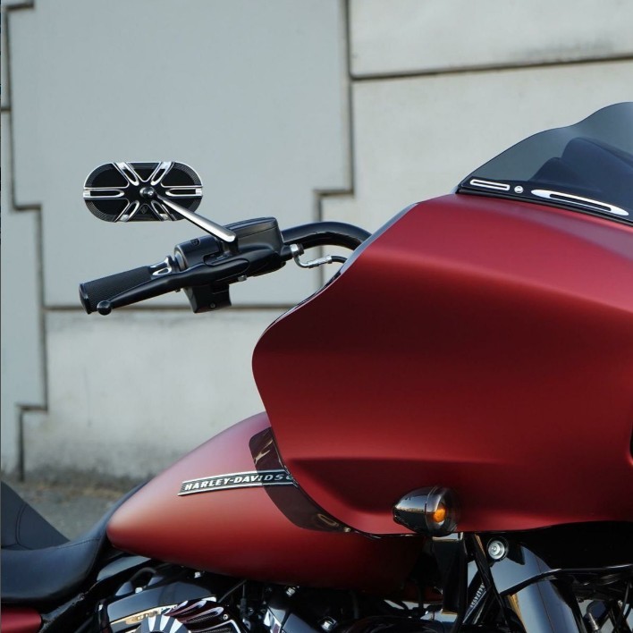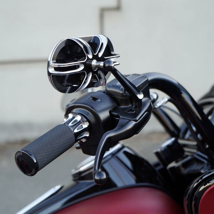 ミラーヘッドとステムはビレットアルミニウムから鍛造され、CNC加工によるディテール です。