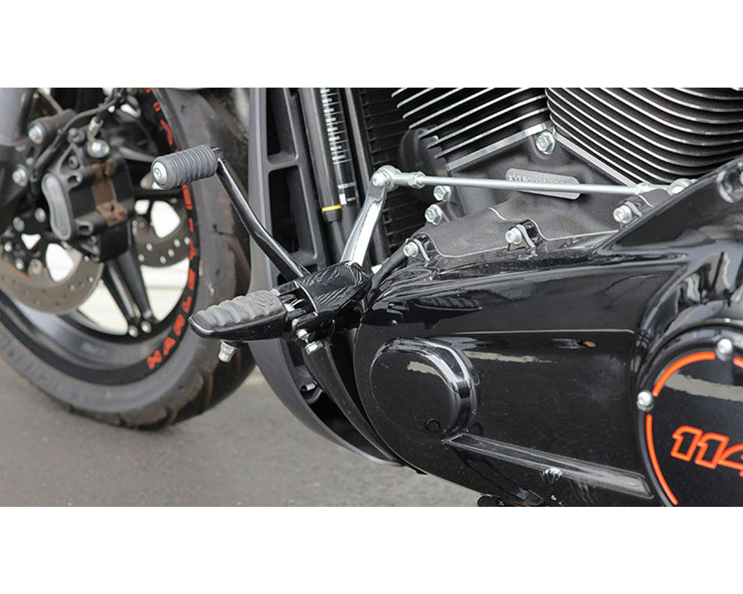 M8ソフテイル ブレイクアウト、スポーツグライド、ファットボブ、FXDR114のステップ位置をバックさせるキットです。