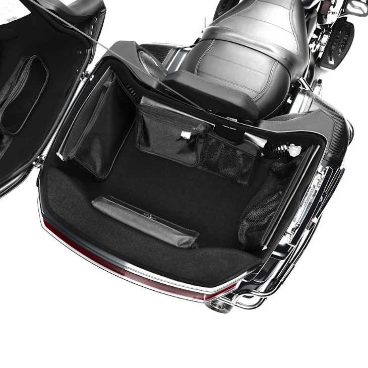 便利な収納システムがGrand Tour-Pak®スーツケースの内壁を包み込み、鍵、携帯電話、地図、手袋などを簡単に整理して取り出すことができます。