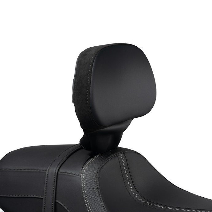 体にフィットする形状の背もたれパッドは、ライダーを前に押し出すことなく腰全体をしっかりとサポートし、スリムなデザインは同乗者にゆとりのある空間を提供します。