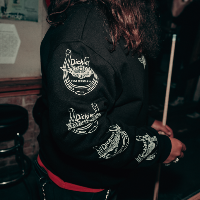 【ハーレー純正】 ユニセックス Dickies x HD ウィングドホースシュー オーバーサイズ プルオーバー パーカー ブラック 96090-26VX