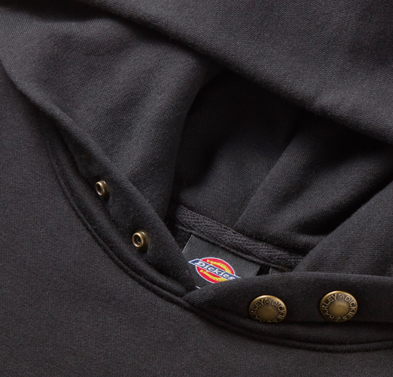 スナップ留めのフードが特徴で、暖かく、ライディング ギアや作業現場でのヘルメットと完璧にフィットします。