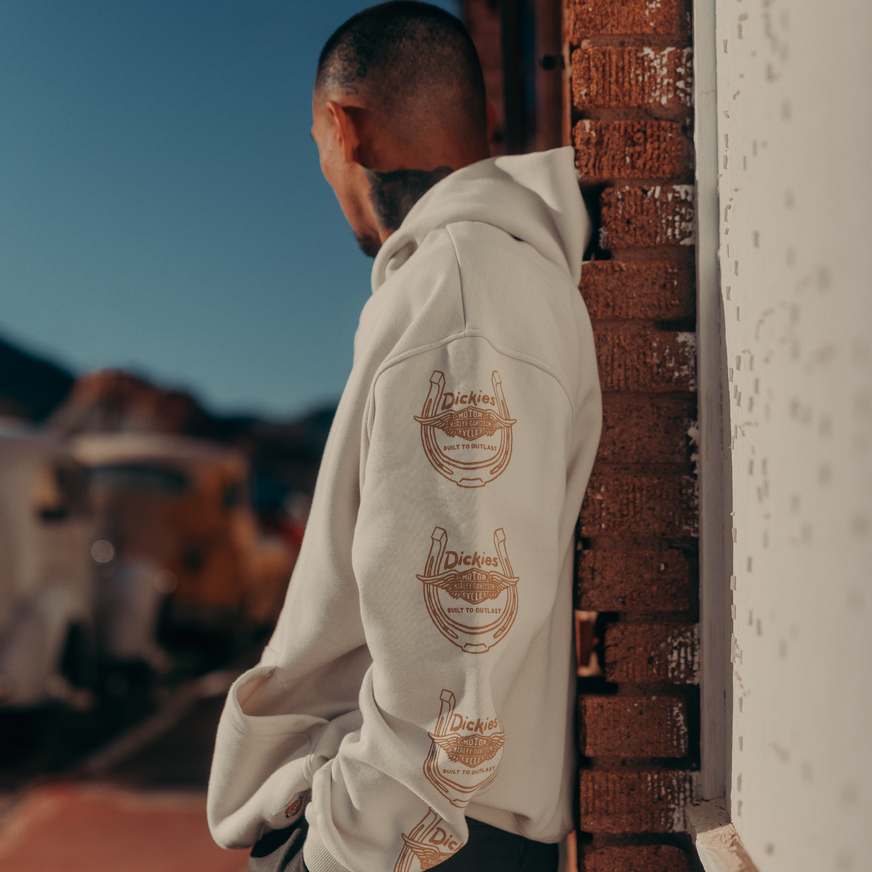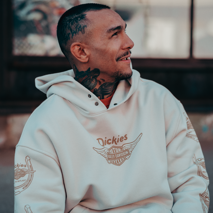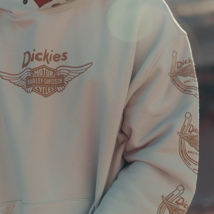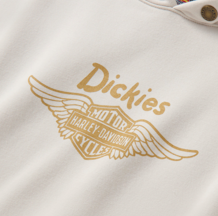 【ハーレー純正】 ユニセックス Dickies x HD ウィングドホースシュー オーバーサイズ プルオーバー パーカー ブラック ホワイト 96091-26VX