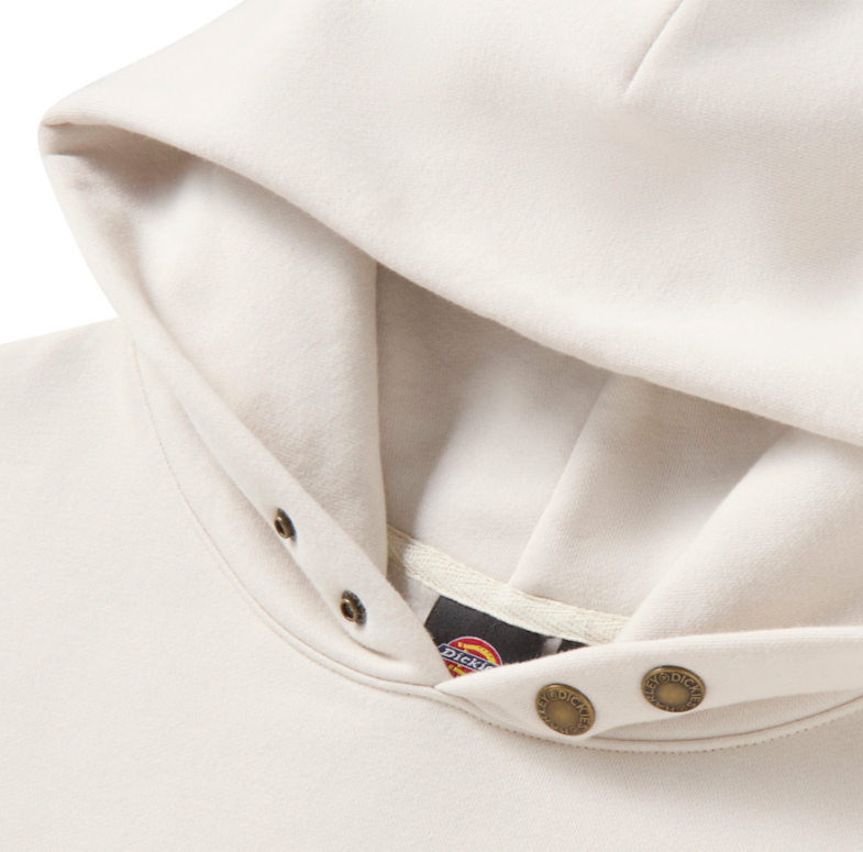 スナップ留めのフードが特徴で、暖かく、ライディング ギアや作業現場でのヘルメットと完璧にフィットします。