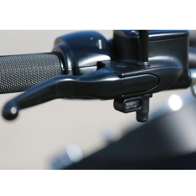 非点灯時はレンズの色味が薄く色づいているため、ハウジングのブラックと相まってスタイリッシュな印象となり、バイクのハンドル周りをクリーンで邪魔のない、ミニマルな状態に保ち、車体全体をより引き締まった、戦闘的なルックスに変貌させます。