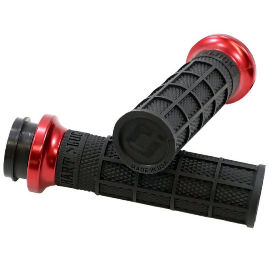 【ODI Grips】 LOCK-ON Hart-luck Signature Full-waffle グリップ 電子制御スロットル用 ブラック/レッド V31HTW-BB-R