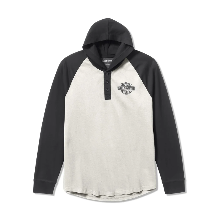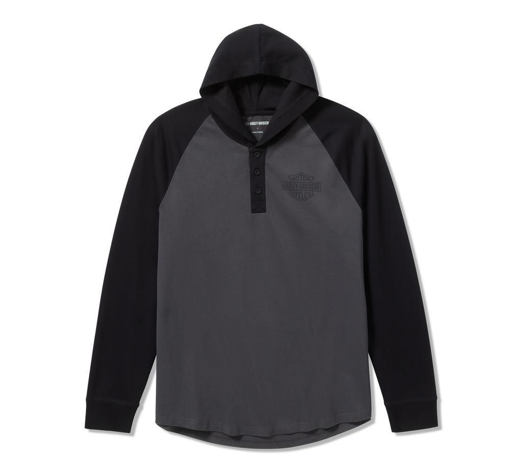 【ハーレー純正】 メンズ HDMC ラグランヘンリー フード付き グレー×ブラック 96723-25VM